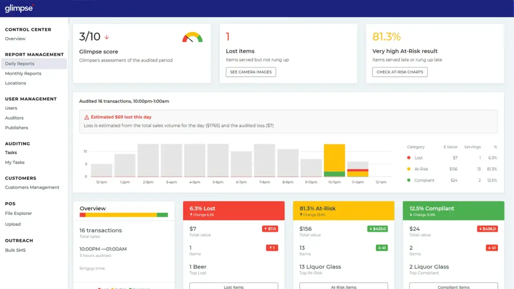 Periodic reviews between management and Glimpse will highlight the areas of highest risk for lost revenue and provide tips for improvement.