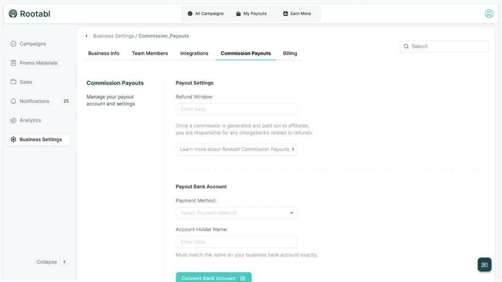 - Automated Commission Payouts: Rootabl simplifies the payout process by automating affiliate commissions, reducing administrative burden and ensuring timely payments.